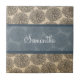 Elegant and modern Vintage Zinnia Tile featuring a pretty textured floral background and an alluring blue two-toned banner. Easy to customize, simply add the personalized text of your choosing in the text field provided. Click "Customize It" to find additional personalization options.