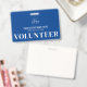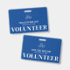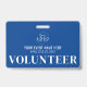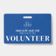 The design features clean and easy-to-read white typography on a blue background, ensuring clear identification. The background and text colors can be customized to match your organization's branding or event theme. Whether for short-term events or ongoing volunteer programs, this badge provides a polished and functional way to recognize those giving their time.