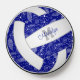 This boho volleyball themed PopSocket for her features the realistic image of a volleyball that has blue and white panels - a fun doodle pattern of paislies, flowers and feathers in white covers the volleyball's blue panels - personalize with the athlete's name and monogram, varsity letter or jersey number - by katz_d_zynes