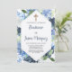 Blue water colored flower baptism invitation