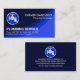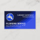 Cover features a blue shaded water waves design. Over at the top is a silver blue faucet logo you can use with your prestigious name and job title on the right. Near the base is the business name "PLUMBING SERVICE" and its contact details.