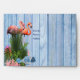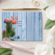 Blue vintage wood textured creative arty design with pink coral and flamingo's and fish for a wedding theme. This collection comes with a matching guest book for wedding guests