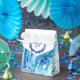 Blue watercolor art thank you gift box. Ideal for wedding favors and attendants gifts. Watercolor art abstract art and wreath design. Part of the blue aqua abstract wreath wedding set. Watercolor art and design by Sarah Trett. www.sarahtrett.com for www.mylittleedenweddings.com