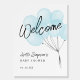 Cute welcome sign perfect for a boy baby shower celebration. Featuring watercolor balloons in pastel blue and "Welcome" in simple script calligraphy.