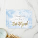 Modern elegant Bar Mitzvah thank you card featuring watercolor blue background and gold script. Personalize with your message and name.