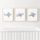 Blue Watercolor Biplane Boy Travel Nursery Decor Wall Art Sets