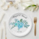 Blue watercolor cactus flowers and succulent wedding Paper Plate. A beautiful bouquet made of aqua blue cactus flowers and succulent leaves adorns this lovely paper plate. Your names are in script typography and it also includes your wedding date.