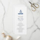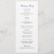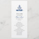 Simple and elegant wedding program featuring watercolor illustration of a blue and white church.
