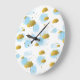 Blue Watercolor Clouds Gold Stars Sky Large Clock