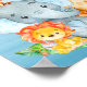 Blue Watercolor Cute Safari Jungle Animals Poster