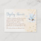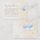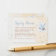 This charming display shower card was designed to match a soft watercolor baby shower theme. A sweet little elephant swinging on a cloud among golden stars creates a dreamy nursery scene while politely inviting guests to bring their gifts unwrapped. A lovely way to keep the celebration relaxed and joyful.
