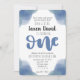 Blue Watercolor First Birthday Invitation