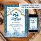 Features a stunning mosque-inspired arch framed by vibrant blue watercolor flowers. The elegant grey pattern background adds a premium feel to your Eid Al-Fitr or Eid Al-Adha messages