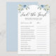 Find the guest! Mingle with the guest to find the answer to the questions. Add this fun and playful botanical shower game card to your event. It features watercolor illustrations of off-white and blue roses and peonies with a greenery accent. Personalize by adding back texts. This floral find the guest mingling game card is perfect for weddings, birthdays, bridal showers and baby showers.