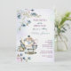 Blue watercolor floral tea party bridal shower invitation