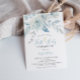 Blue watercolor flowers first holy communion invitation