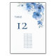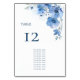 Blue fine art watercolor flowers wedding seating chart guest names.