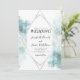 blue watercolor geometric silver frame wedding invitation