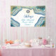Pretty banner with blue and turquoise watercolor paint. Swirls of paint are accented with gold glitter, gold strings and gold confetti. Perfect for most any event or occasion. Personalize text to suit your special day.