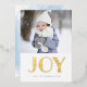 Blue Watercolor GOLD JOY Christmas Photo Foil Holiday Card