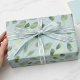 Send holiday greetings with a classic touch! This elegant blue and green wrapping paper features classic watercolor greenery accents.