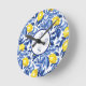 Blue Watercolor Lemon Patten Monogram Round Clock