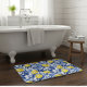 This Blue French Country lemon pattern bath mat blends sunny yellow lemons with rich blue leaves for a fresh Mediterranean look. Perfect for those who love French country decor and timeless blue tile elegance.
