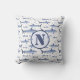 Blue Watercolor Monogram Shark Jellyfish Pattern Throw Pillow