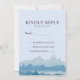 Blue watercolor mountain, landscape, mountain range wedding RSVP card.
