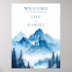 Blue Watercolor Mountain Wedding Welcome Sign