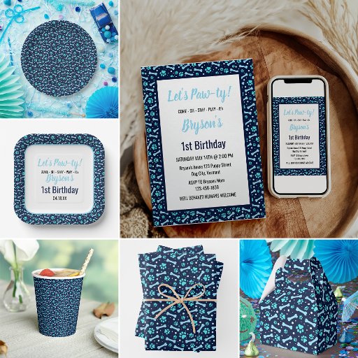 Custom Dog Birthday Blue Paw Print Puppy PetDesigned by SAIDA ELHADDAOUI