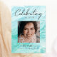 Invite friends and family to share their favorite stories and memories with this elegant blue watercolor celebration of life invitation featuring a photo.