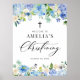 Blue Watercolor Rose and Hydrangea Christening Poster