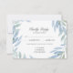 Blue Watercolor RSVP Card with Meal Choice - features a hand painted watercolor design of elegant leaves. This design includes modern and fonts for the text layout. Add a touch of Nature to your Special day!