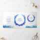Blue watercolor splash art wreath wedding Tri-Fold Program