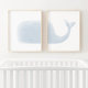 Blue Watercolor Whale Beach Nursery Wall Art Sets