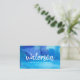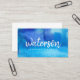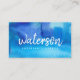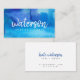 This modern business card design features a chic blue watercolor background with white calligraphy script on the front and a white background with minimal typography on the back. It has a cool, modern look and would make a fabulous first impression for any business. You can further customize this design by changing the background colors, font colors, or adding your own photo.