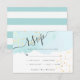 This stylish and elegant Bat Mitzvah RSVP card features a turquoise blue background in watercolor with faux gold splatters and lettering in black . The reverse side features a white background with turquoise blue stripes. Personalize it for your needs. You can find matching products at my store.