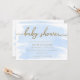 Blue Watercolour Gold Baby Shower Invitation
