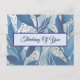 Blue Watercolour Leaf Thinking of You Postcard