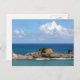 Features a photo of St. Lucia's gorgeous blue waters and blue sky, near the town of Laborie.