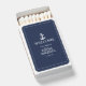 The pieces of this elegant wedding suite feature classic nautical styling with a clean, minimalist look. Stylistic waves in shades from aqua to navy blue and an anchor and rope illustration provide unique accents. A large anchor image in white above your names and wedding date give this wedding favor matchbox a striking appeal. Perfect for yacht club, boat, beachside or summer destination weddings. Search ID836 to see this complete suite and others with alternate marine element accents.