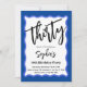 Blue Wave Curve Modern Script 30th Birthday Party Invitation