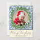 Blue Wave Evergreen Frame One Photo Christmas Holiday Card