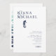 This elegant wedding suite features classic nautical styling with a clean, minimalist look. Stylistic waves in shades from aqua to navy blue and a seahorse illustration provide unique accents. An asymmetrical layout with the bride and groom's names taking precedence give this wedding invitation a striking modern twist. Perfect for yacht club, boat, beachside or summer destination weddings. Search ID836 to see this complete suite and others with alternate marine element accents.