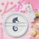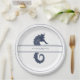 This elegant wedding suite features classic nautical styling with a clean, minimalist look. Stylistic waves in shades from aqua to navy blue and a seahorse illustration provide unique accents. A white background with fine navy blue piping gives this wedding paper plate a striking modern twist. Perfect for yacht club, boat, beachside or summer destination weddings. Search ID836 to see this complete suite and others with alternate marine element accents.