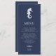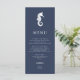 This elegant wedding suite features classic nautical styling with a clean, minimalist look. Stylistic waves in shades from aqua to navy blue and a beautiful seahorse illustration provide unique accents. A small seahorse image in white on navy blue, along with a template provided to add your menu selections, initials and wedding date. Perfect for yacht club, boat, beachside or summer destination weddings. Search ID836 to see this complete suite and others that offer alternate marine element accents.