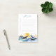 Add whimsical marine theme to liven up your everyday with our colorful Blue Waves & Happy Whales Customizable Post-It Notes featuring three playful whales frolicking in a serene sea under a golden sun. The design is captured in shades of blue, teal, yellow, gold, pink and purple. All text can be updated to create personalized stationary.