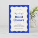 Plain white envelopes are included with paper invitations and will come to fit the invitation size you select. If you don’t need the envelopes, you may choose to not receive them by selecting the dropdown below "Envelopes" and choosing "None." If you’d like to have a design on your envelopes, you can browse all of these available envelopes to find the design that complements your Blue Wavy Retro French Bridal Shower Invitation.
