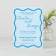 Yes, you can print on the back of your invitation for free! Most designs already have a corresponding design on the back that can be personalized using the Design Tool and going to Layers. This is a great way to communicate more information or further personalize your Blue Wavy Retro Wedding Invitation. The option is really up to you.